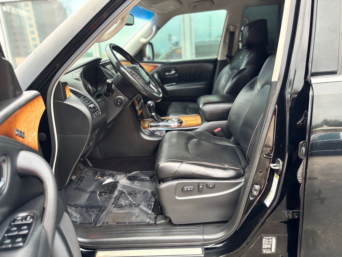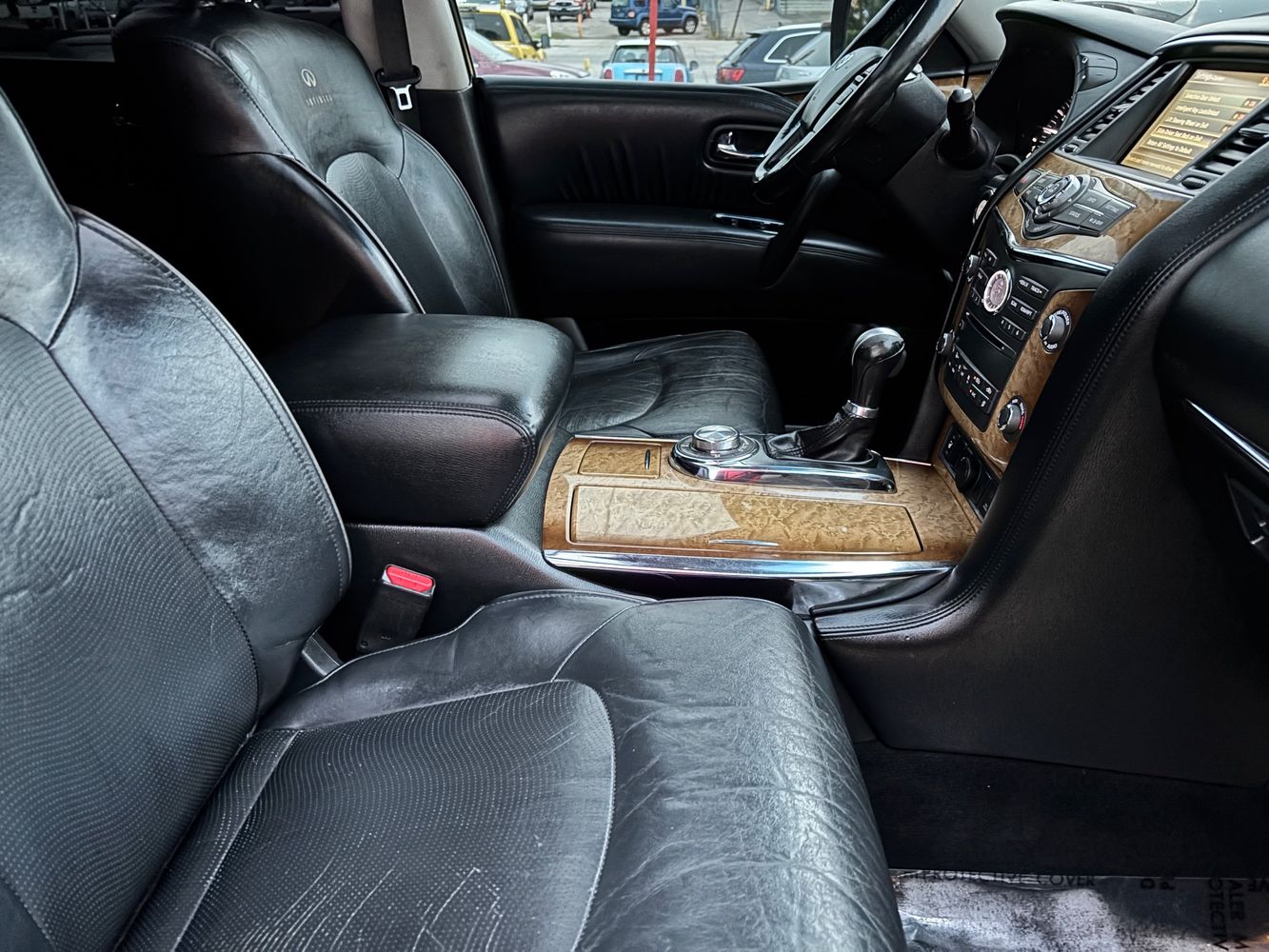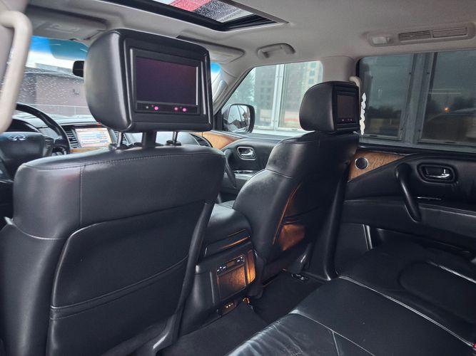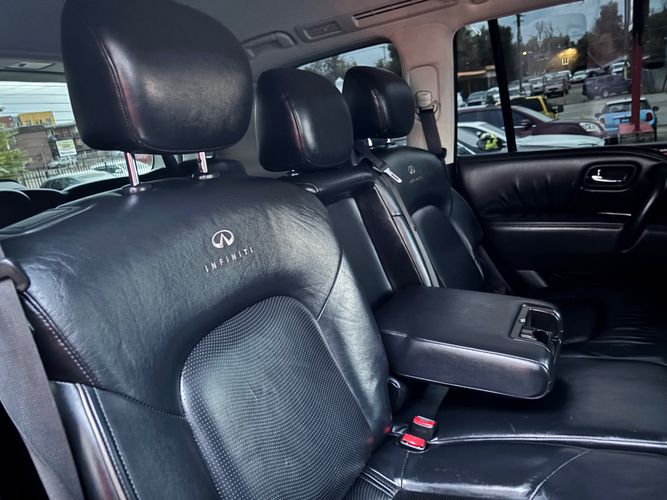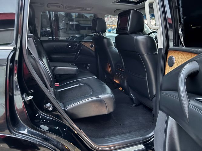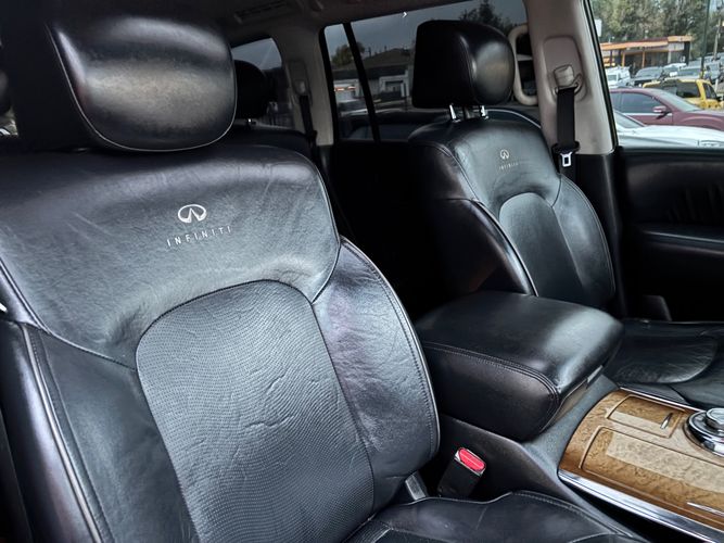 Experience luxury and power with the 2011 INFINITI QX56 Base, a premium SUV that exudes sophistication and performance. Dressed in an elegant Black Obsidian exterior, this vehicle commands attention on every road. Beneath its sleek hood lies a robust 5.6L V8 engine delivering an impressive 400 horsepower and 413 lb-ft of torque, ensuring you're always ready for any adventure. The advanced 4WD system provides confidence-inspiring traction in all conditions.