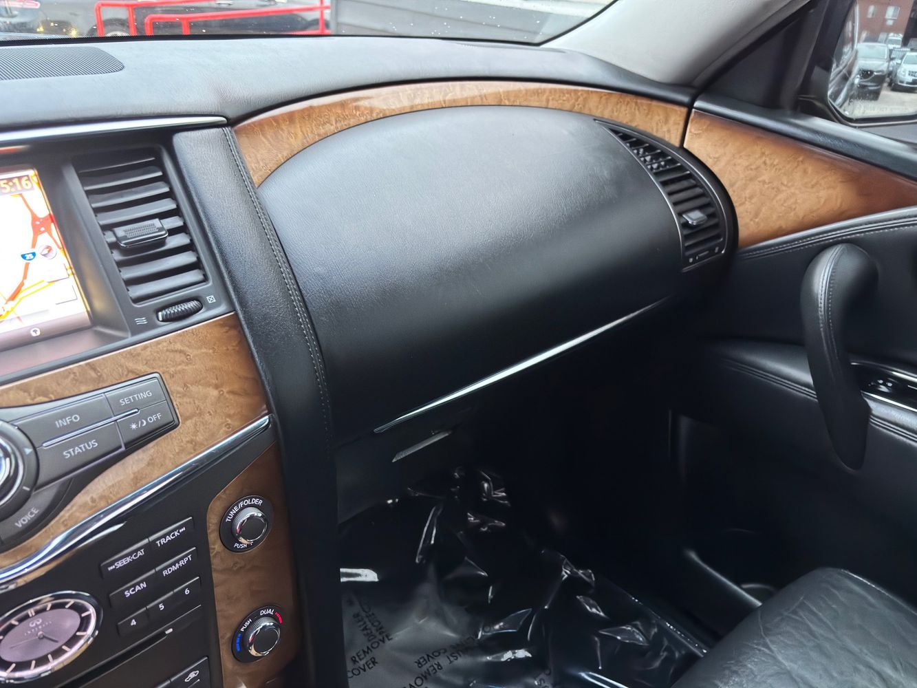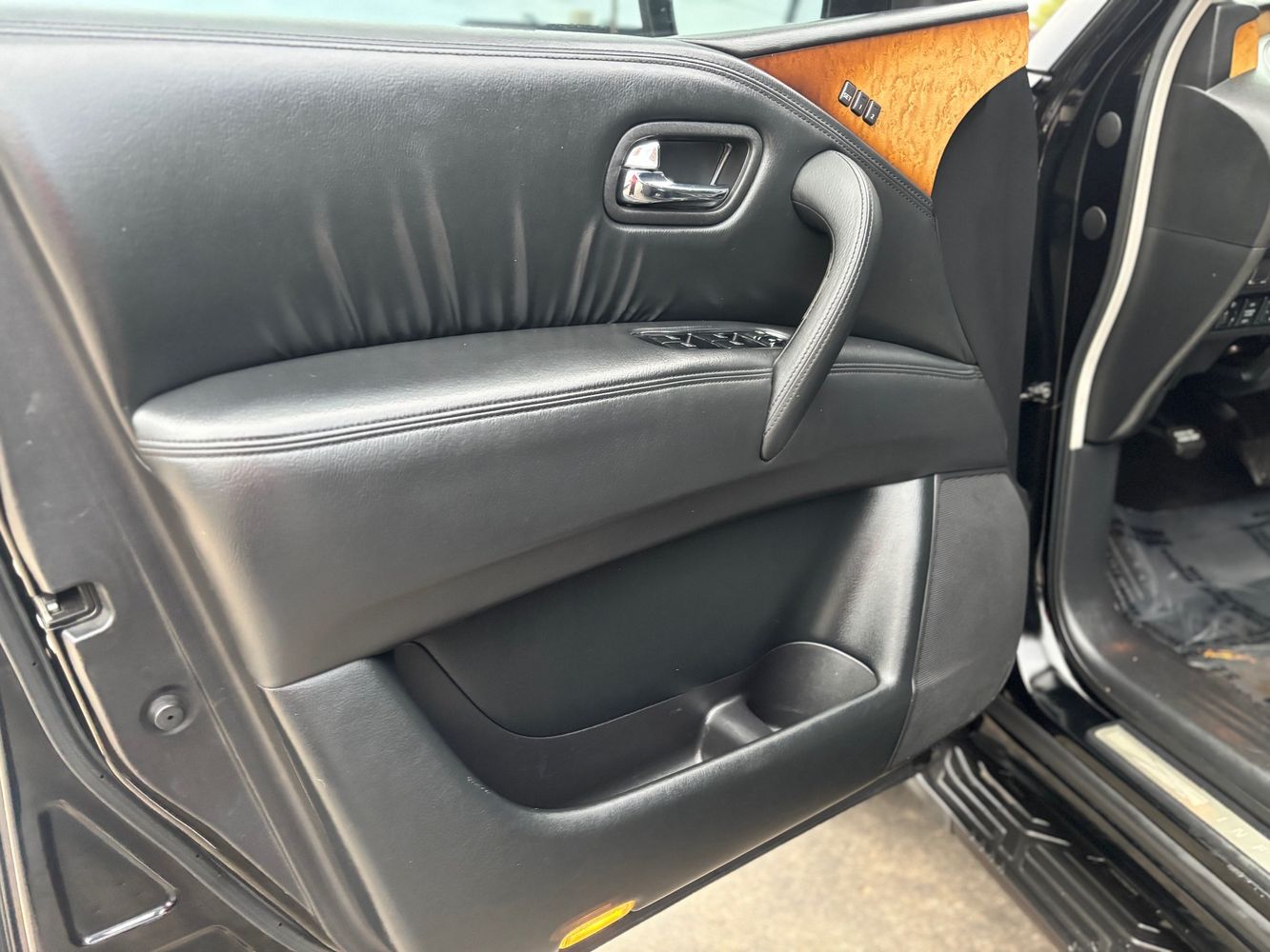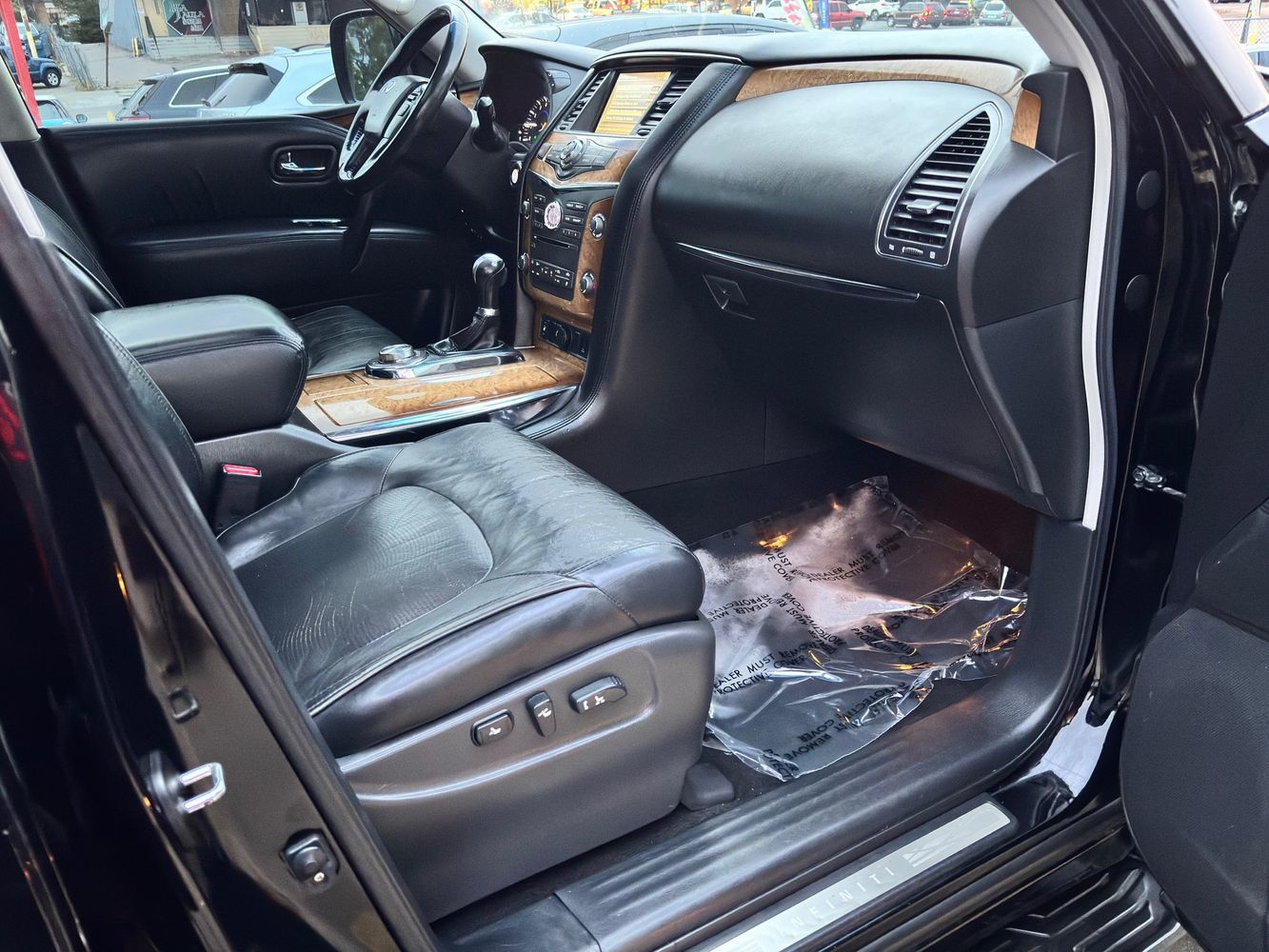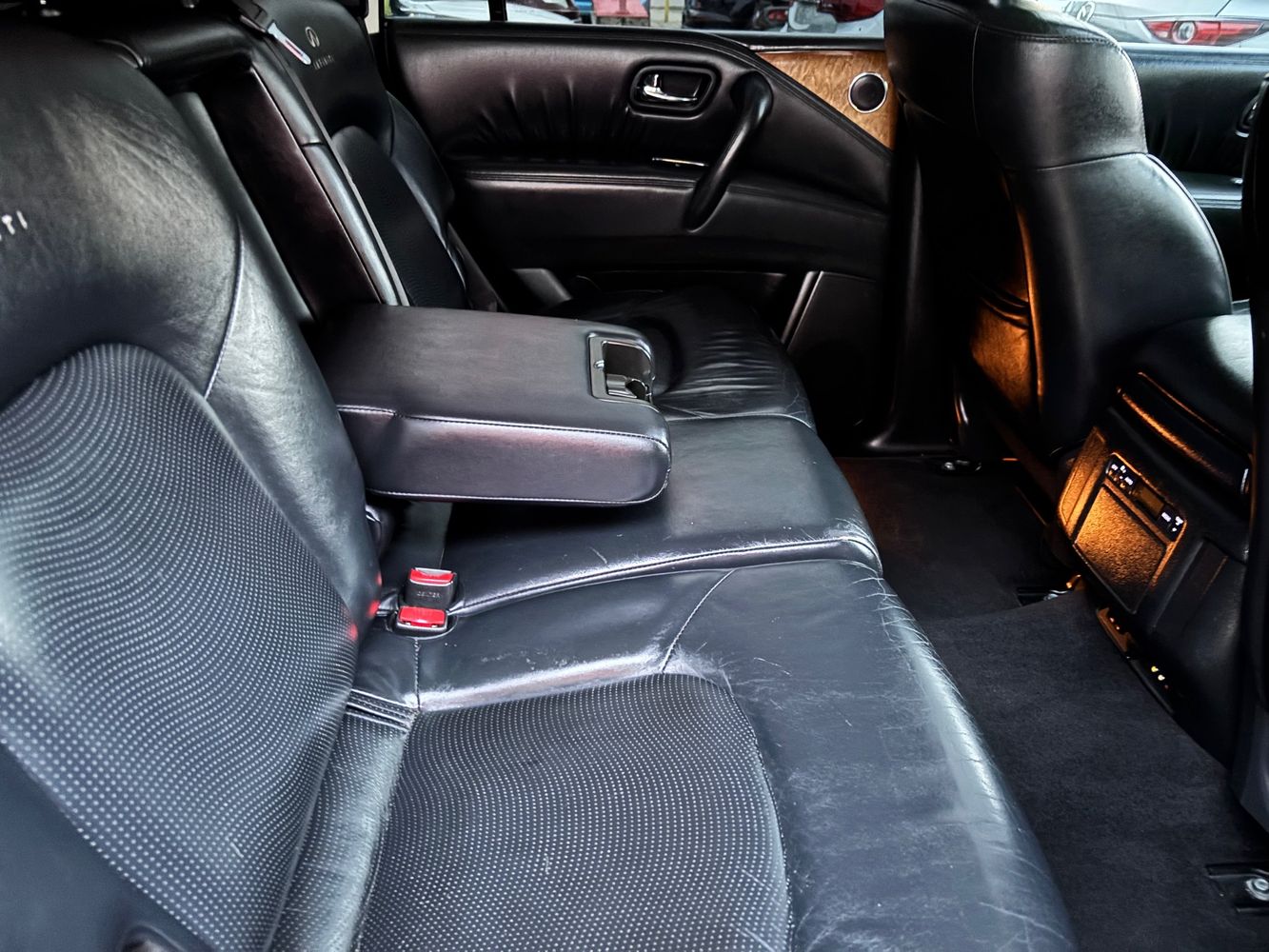 Experience luxury and power with the 2011 INFINITI QX56 Base, a premium SUV that exudes sophistication and performance. Dressed in an elegant Black Obsidian exterior, this vehicle commands attention on every road. Beneath its sleek hood lies a robust 5.6L V8 engine delivering an impressive 400 horsepower and 413 lb-ft of torque, ensuring you're always ready for any adventure. The advanced 4WD system provides confidence-inspiring traction in all conditions.
