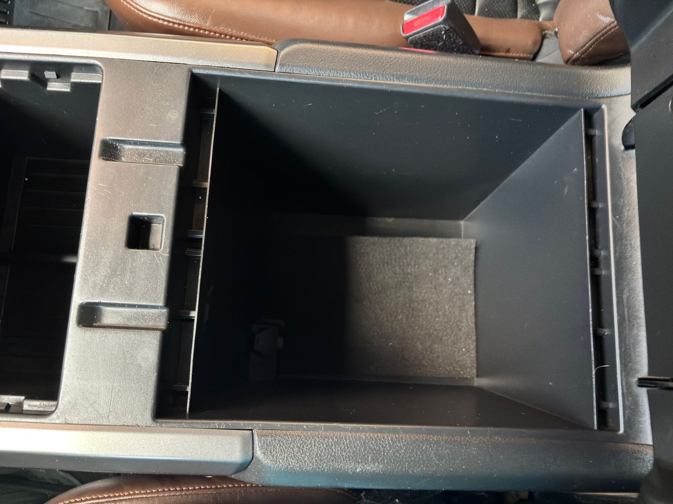 Floor console storage: Covered floor console storage